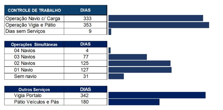 Os quantitativos de Trabalhadores Portuários Avulsos garantem a oferta contínua de mão de obra operacional, respeitando os padrões de segurança e o descanso mínimo de 11 horas entre jornadas de trabalho.