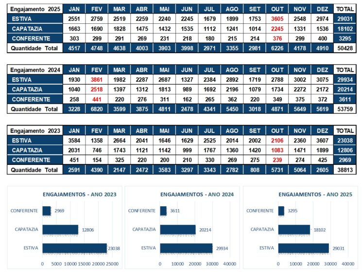 Engajamentos dos TPAs nas atividades 2023 / 2024 / 2025